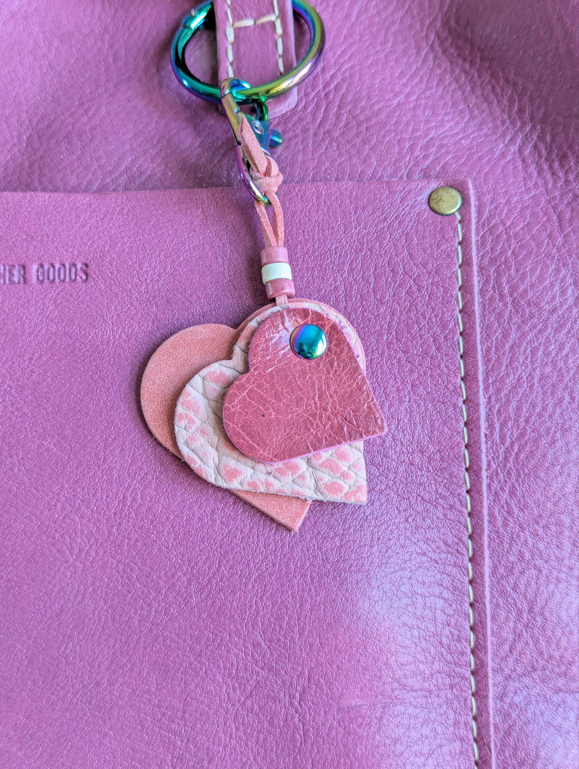#575- A sweet trio of mini SoRetro leather hearts with beads and chromalusion hardware.