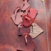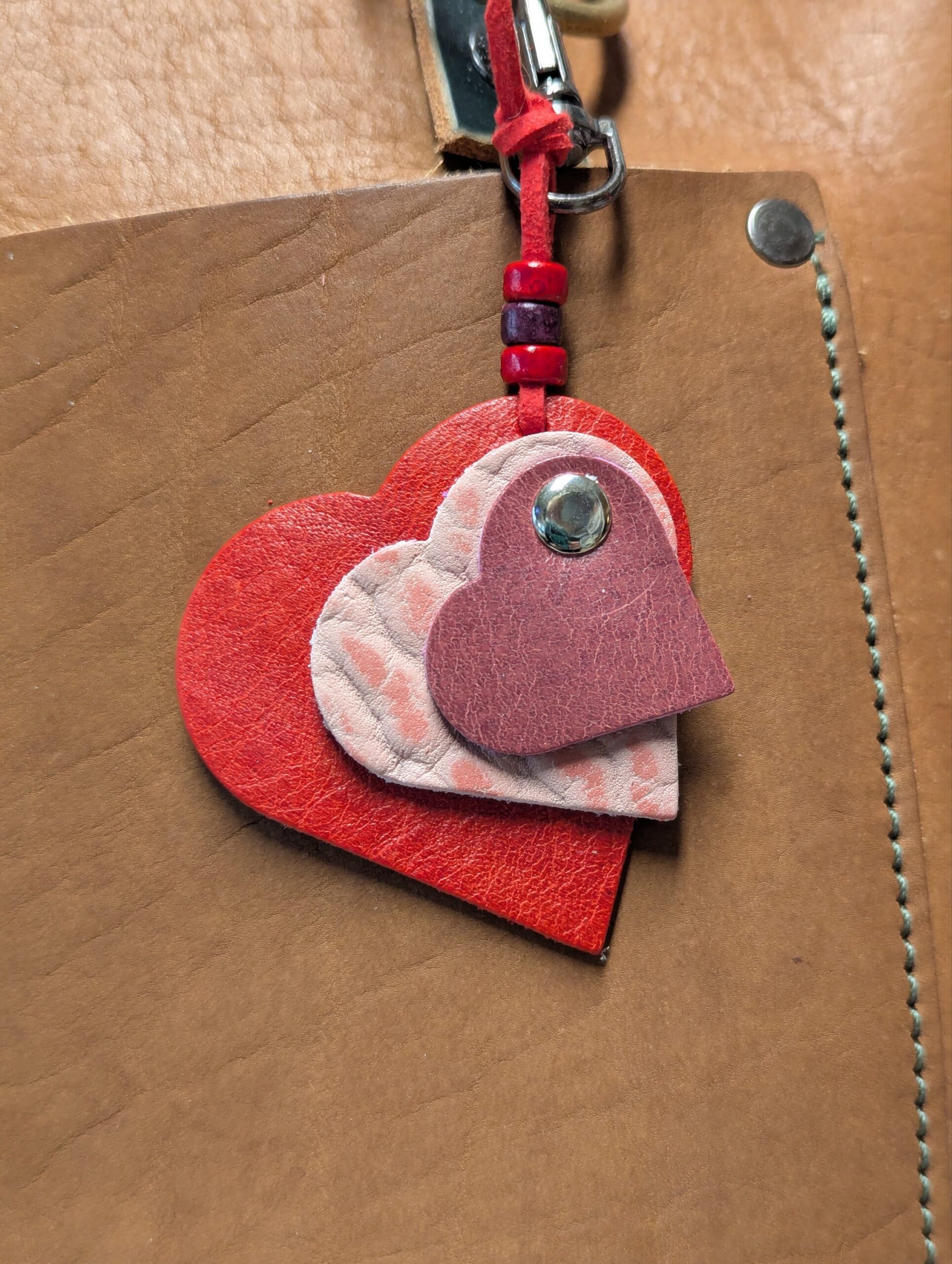 #579- A sweet trio of mini SoRetro leather hearts with beads and silver hardware.