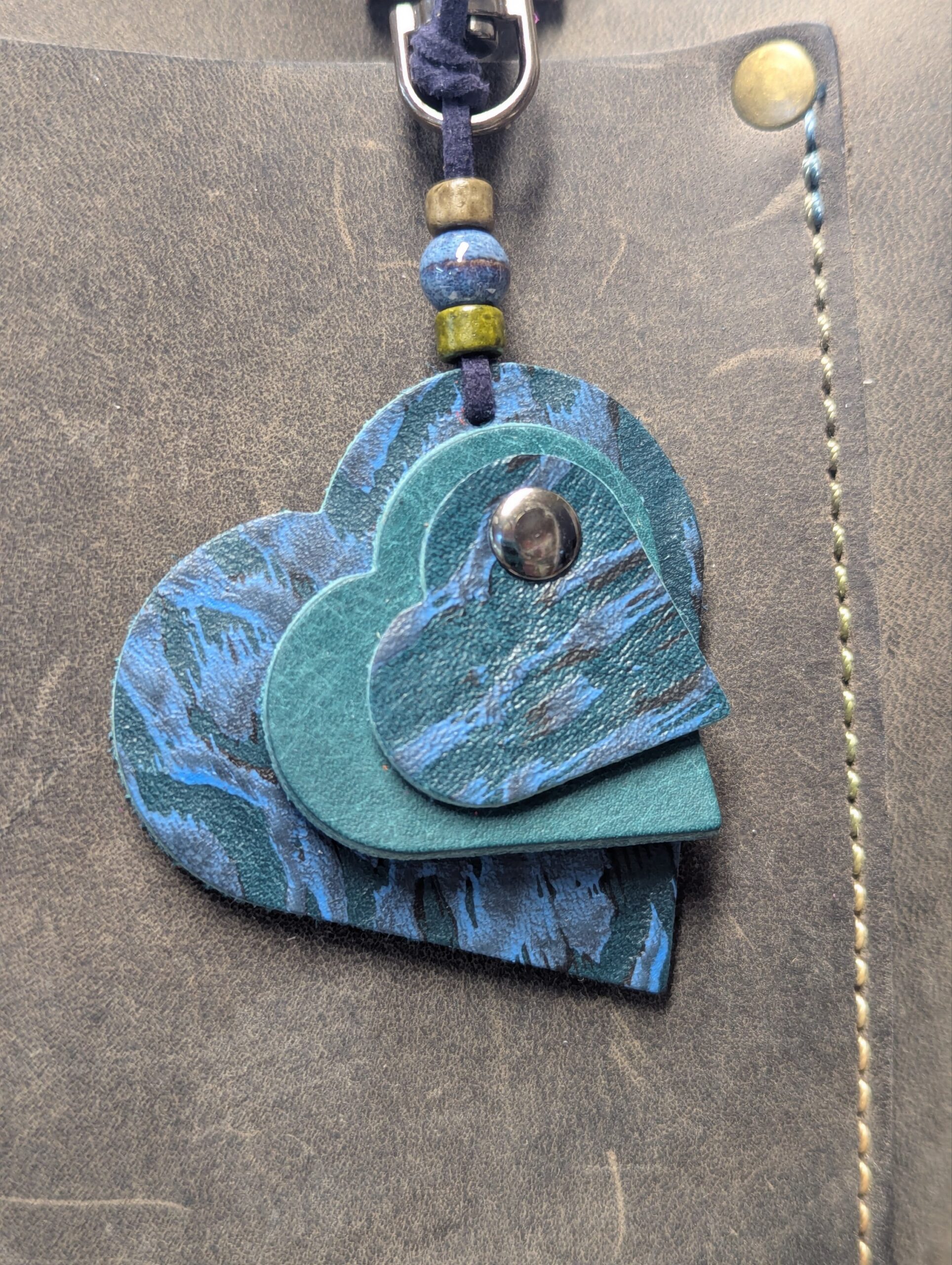 #588- A sweet trio of mini SoRetro leather hearts with beads and gunmetal hardware.