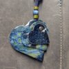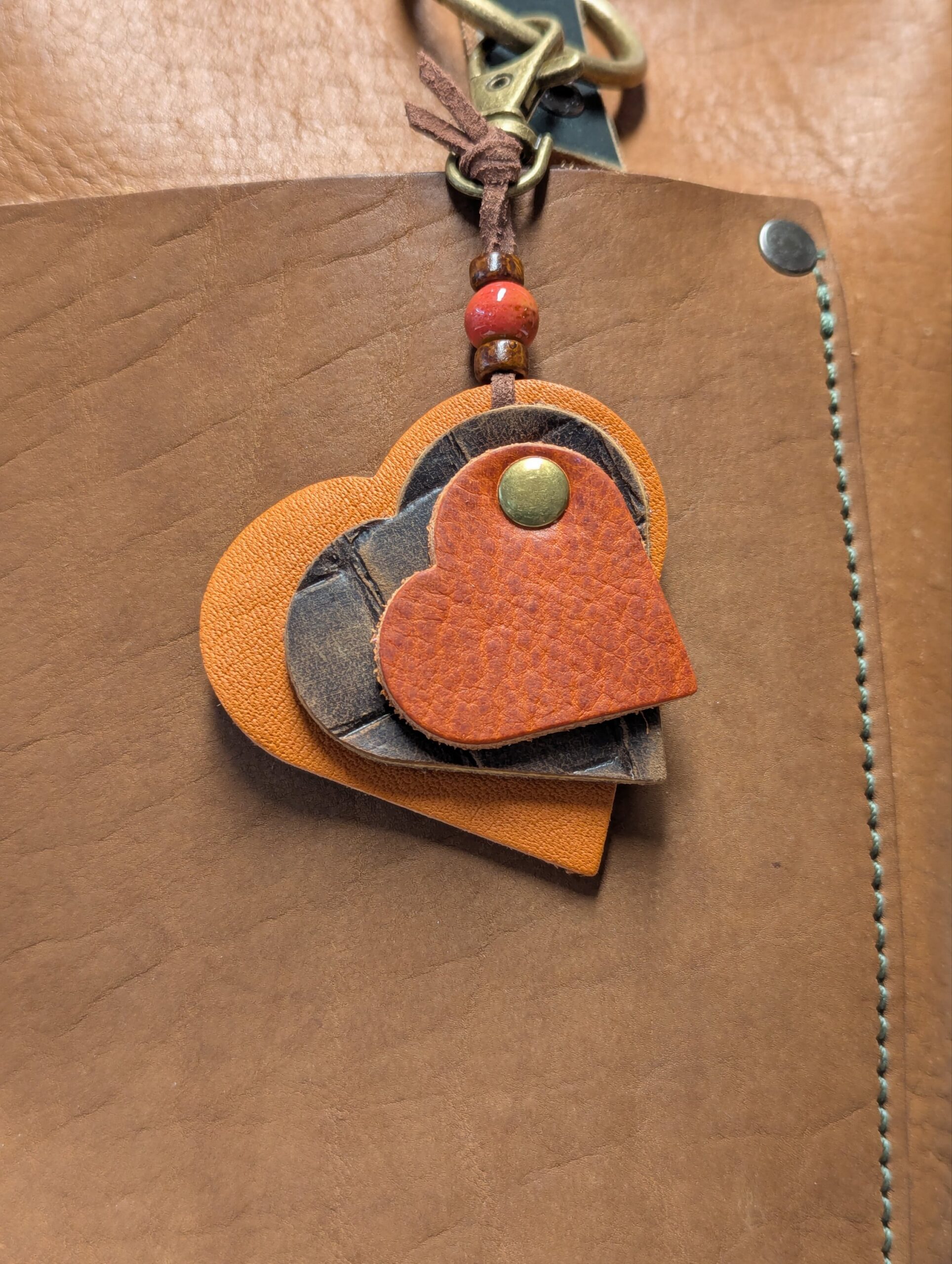 #589- A sweet trio of mini SoRetro leather hearts with beads and ant. bronze hardware.