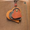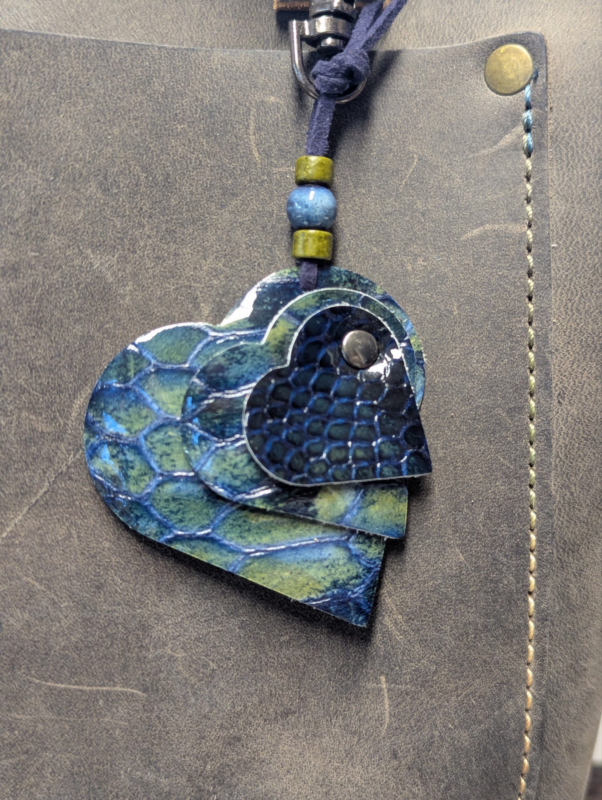 #590- A sweet trio of mini SoRetro leather hearts with beads and gunmetal hardware.