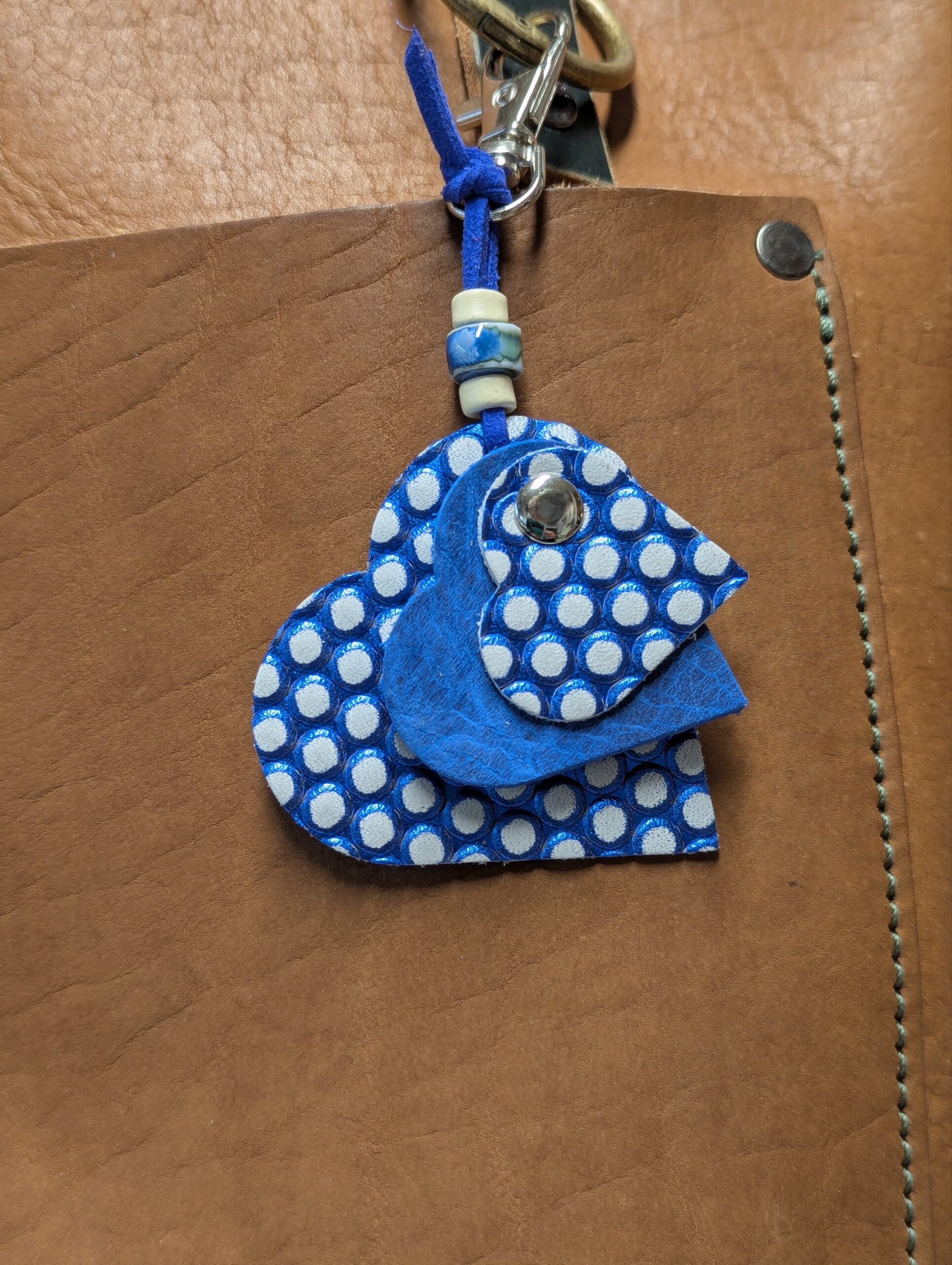 #591- A sweet trio of mini SoRetro leather hearts with beads and silver hardware.