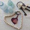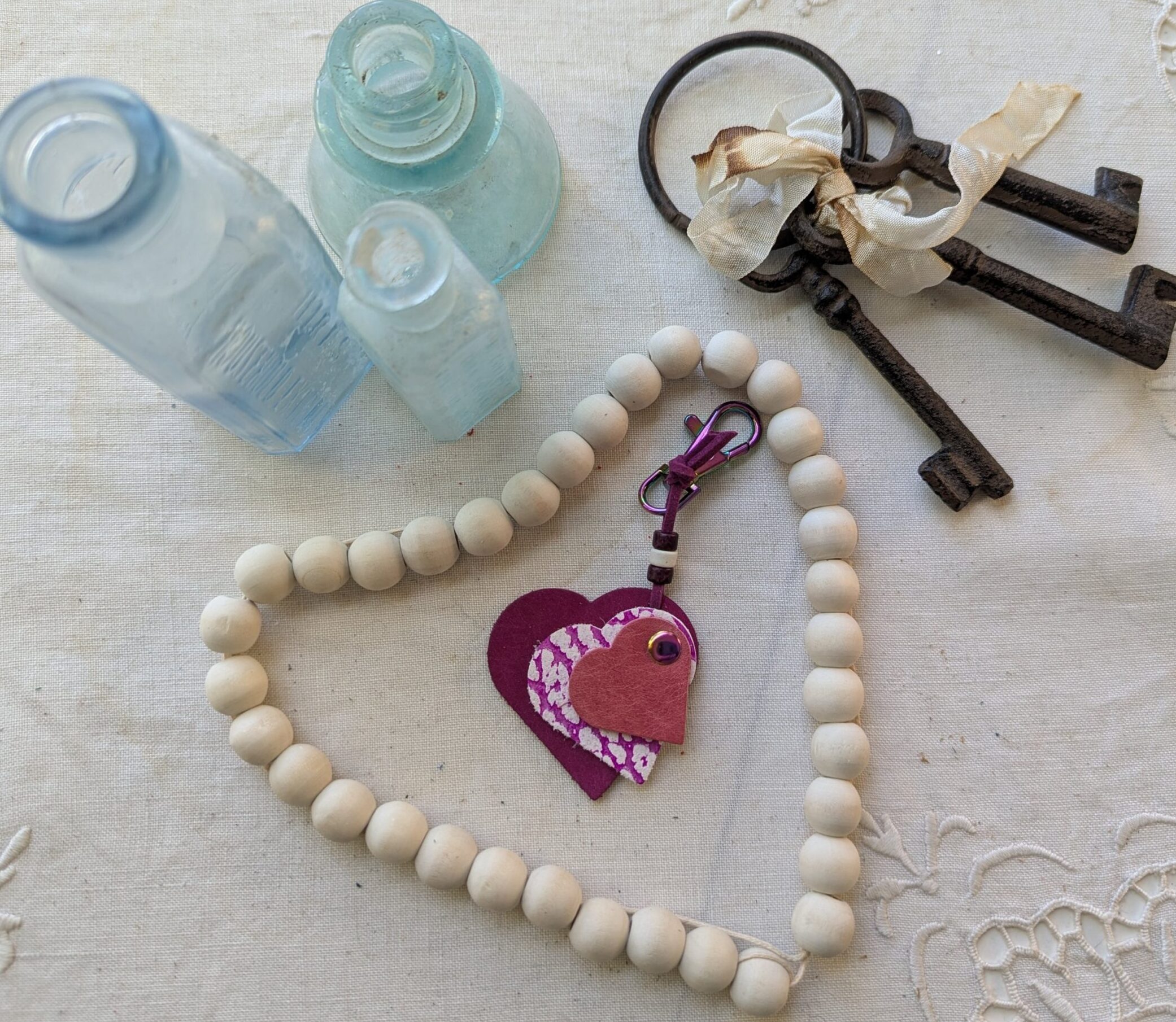 #611- A sweet trio of mini SoRetro leather hearts with beads and chromalusion hardware.