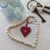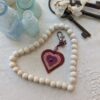 #585- A sweet trio of mini SoRetro leather hearts with beads and chromalusion hardware.