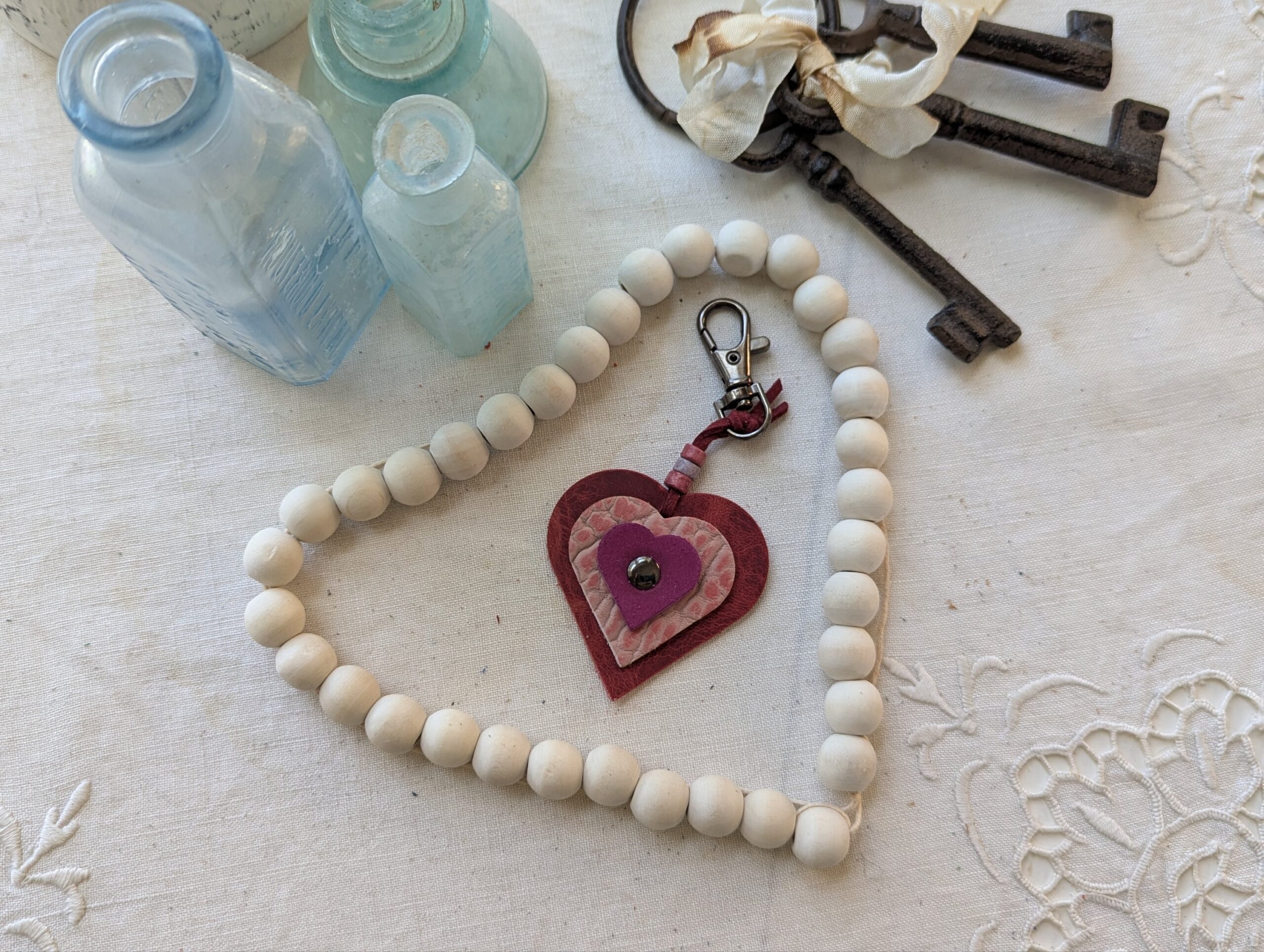 #586- A sweet trio of mini SoRetro leather hearts with beads and gunmetal hardware.