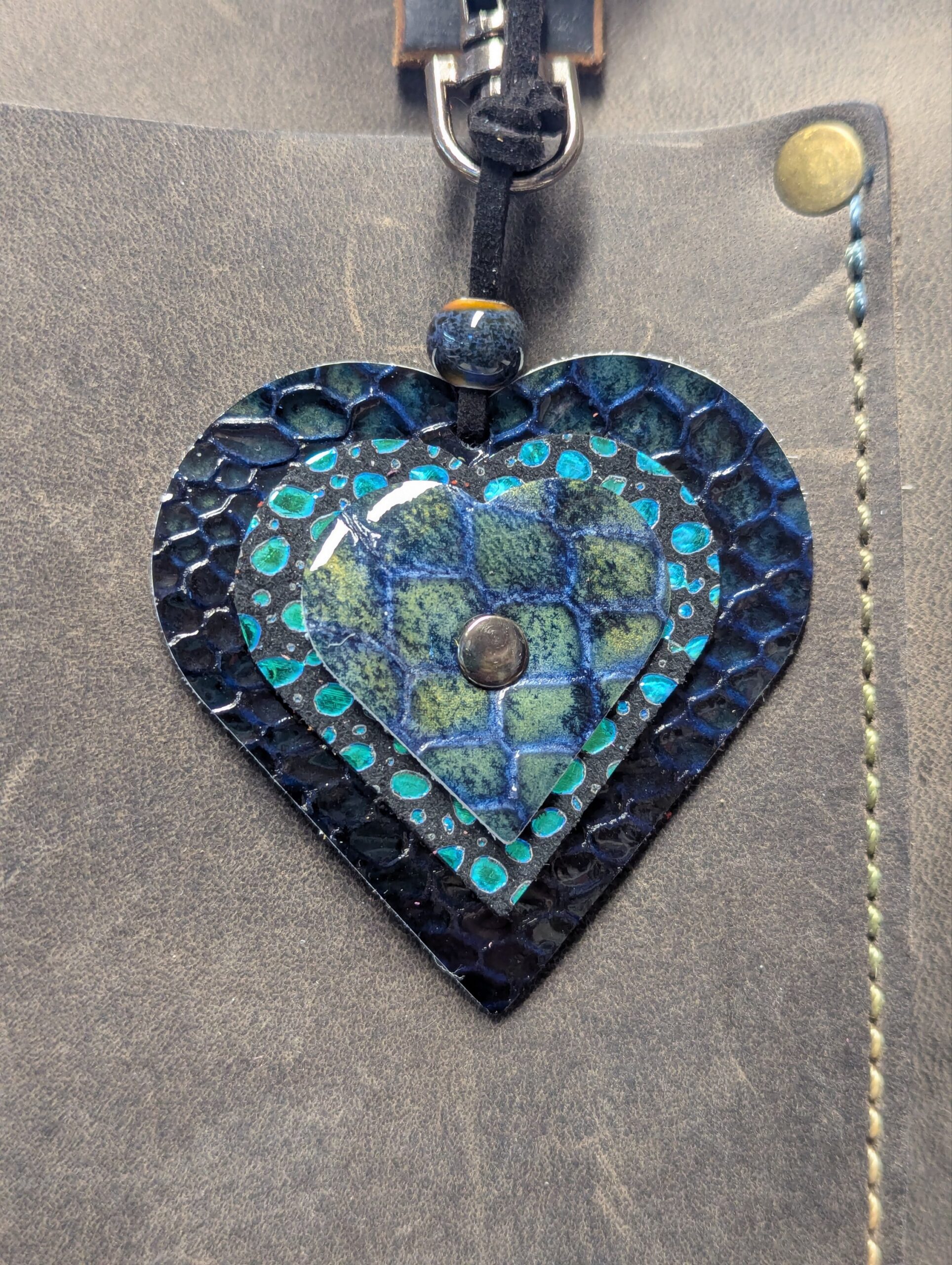 #598- A sweet trio of mini SoRetro leather hearts with beads and gunmetal hardware.