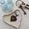 #601- A sweet trio of mini SoRetro leather hearts with beads and chromalusion hardware.