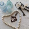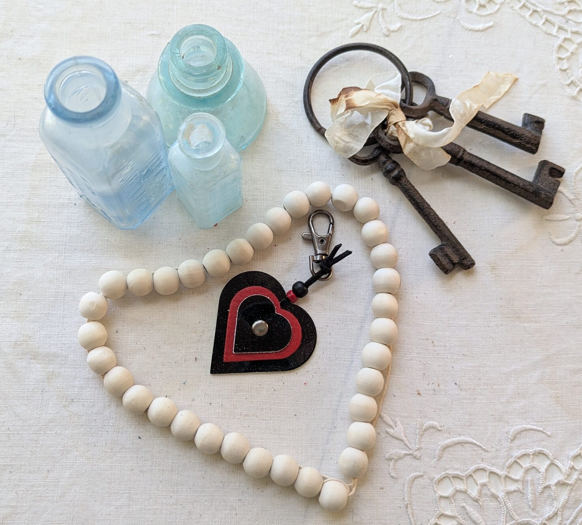 #603- A sweet trio of mini SoRetro leather hearts with beads and gunmetal hardware.